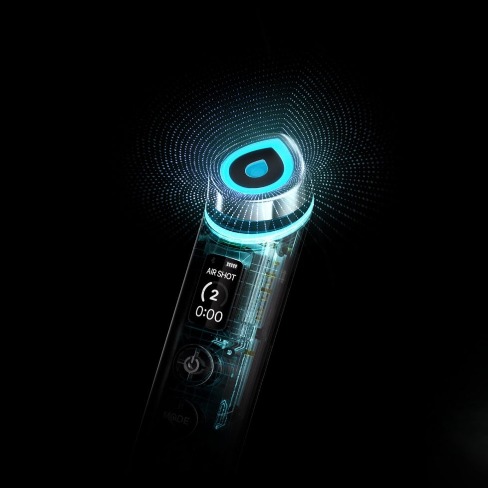 Airshot mode helps to improve the appearancce of pores. lt activates with just one point of contact, allowing for efficient care of wide-pored areas like the T-Zone and U-Zone.