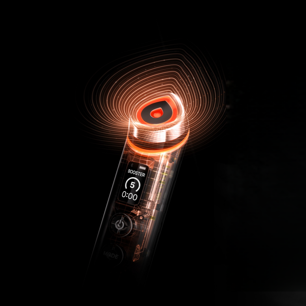 Booster mode enhances the absorption of active ingredients. lt allows skincare actives to be applied more effectively, helping to boost overall glow and skin vitality.
