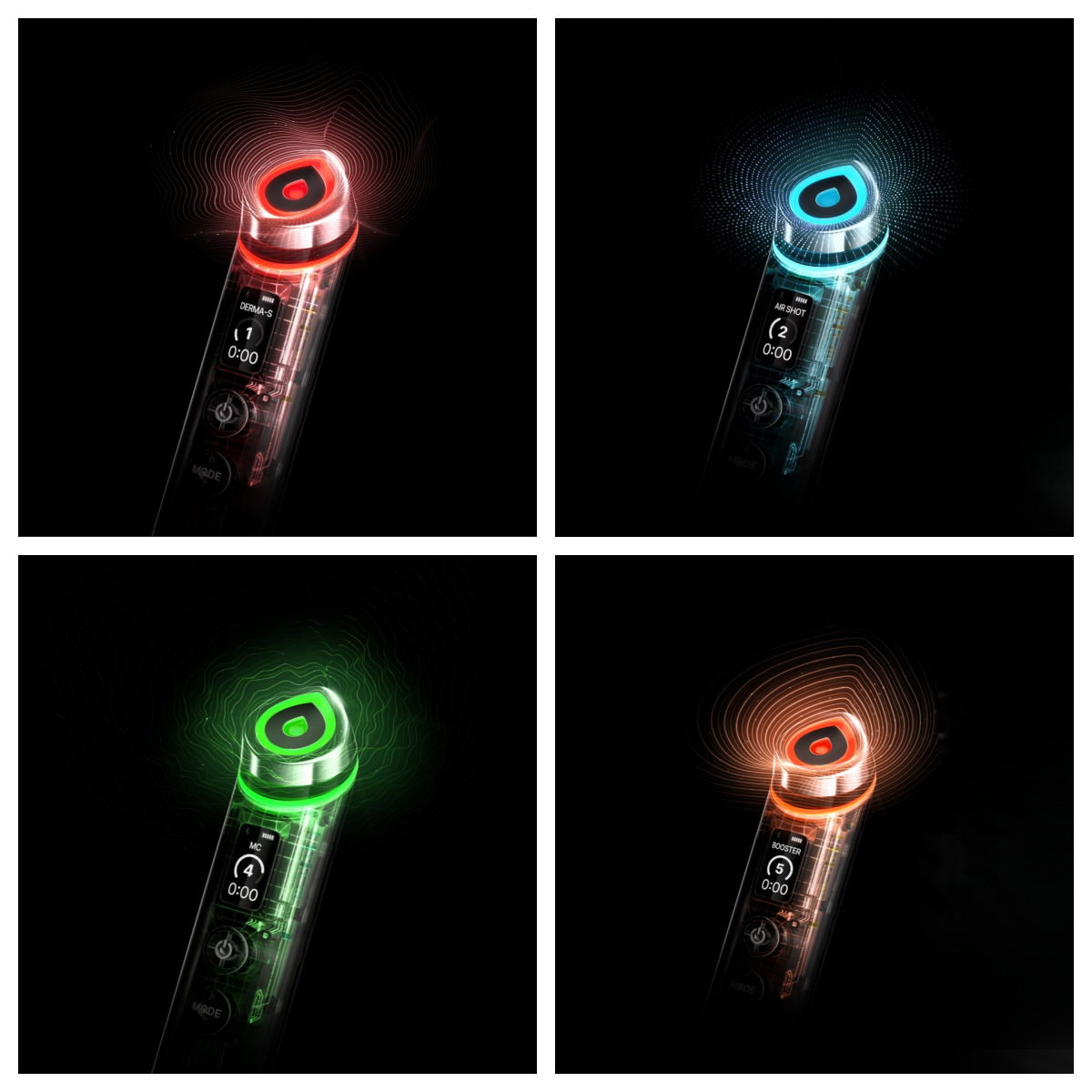 With 6 advanced functions- booster, mc, derma shot, air shot mode, Sonic Vibration, and LED-it targets your skin from every angle.